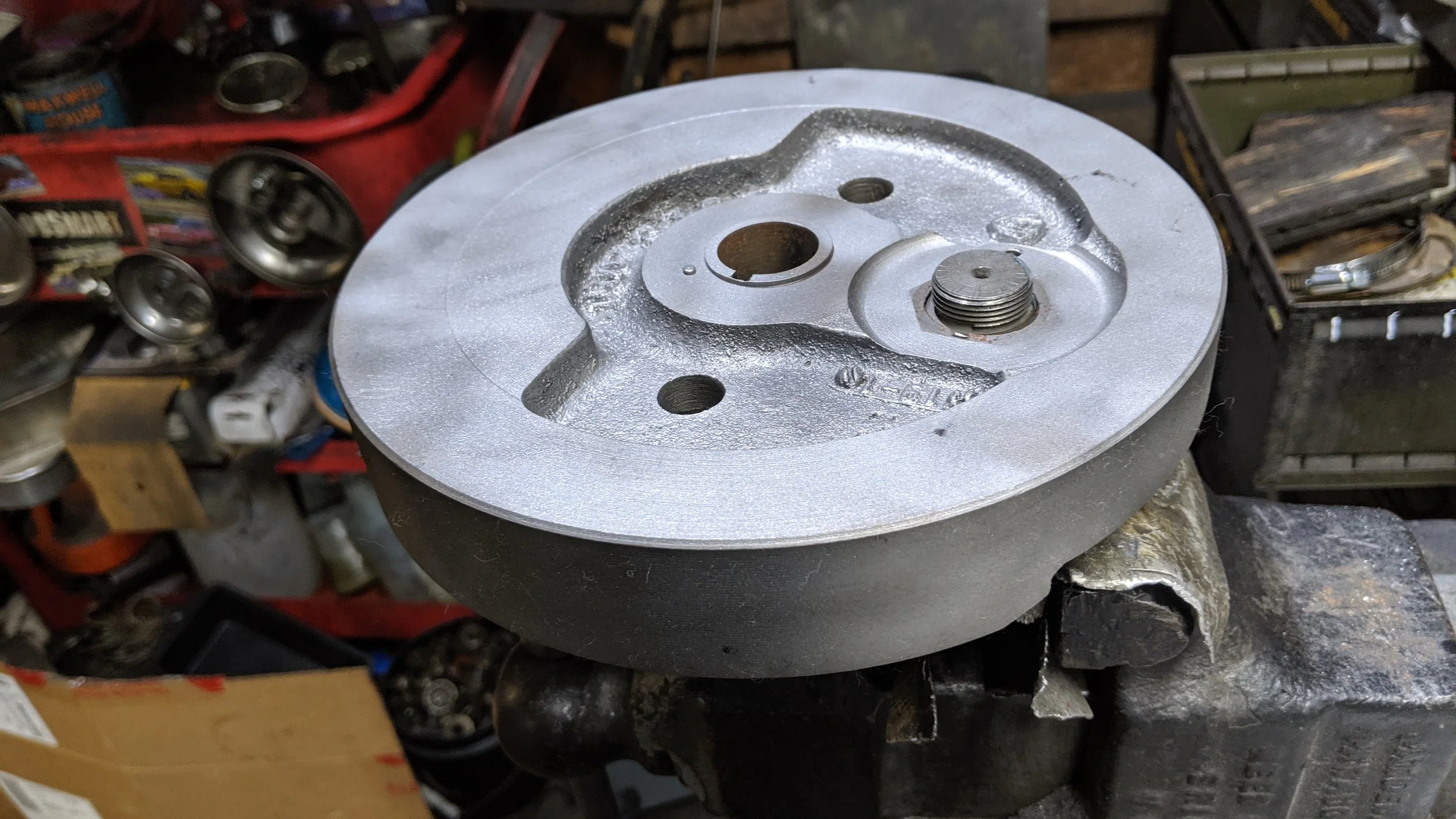 You can see the gray surface lapping leaves on the flywheel crankpin hole in this pic. You’re hoping to get a good mating surface here for pin and wheel to mate up